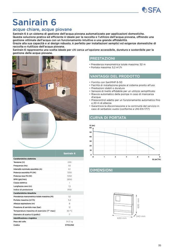 Sanirain 6 è un sistema di gestione dell'acqua piovana automatizzato per applicazioni domestiche.