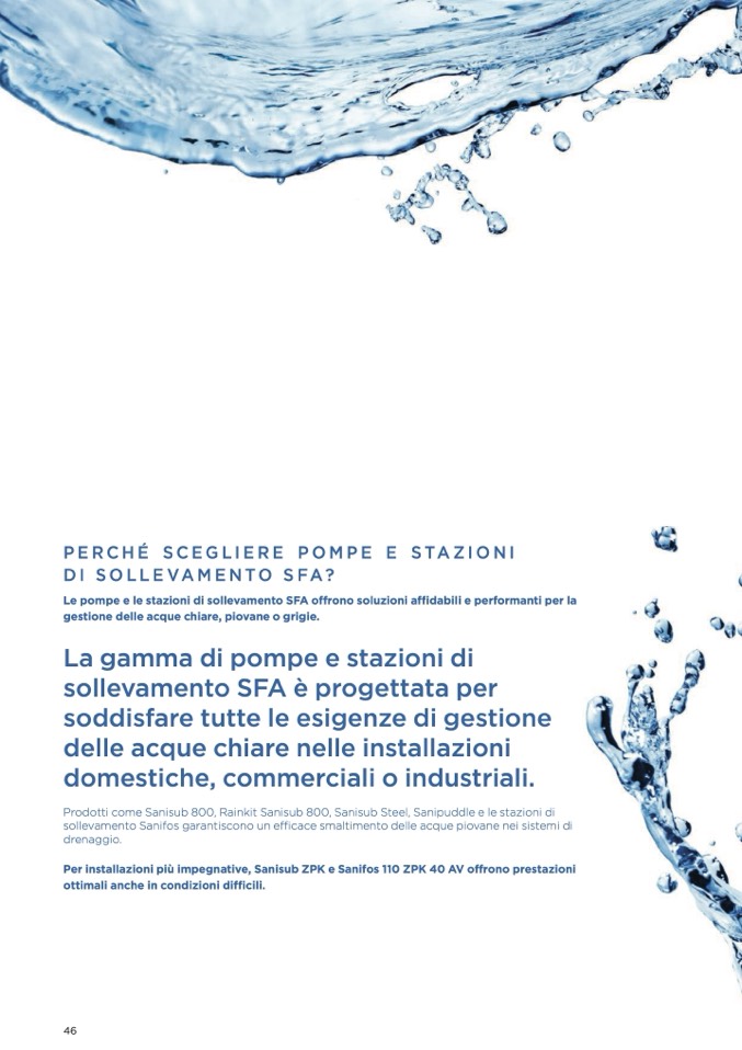 Le pompe e le stazioni di sollevamento SFA offrono soluzioni affidabili e performanti per la