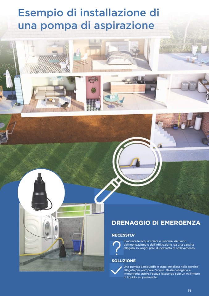 allagata, in luoghi privi di pozzetto di sollevamento.