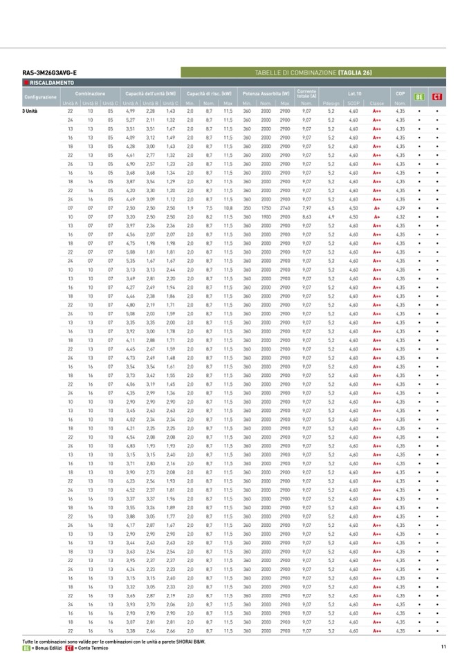 Tutte le combinazioni sono valide per le combinazioni con le unità a parete SHORAI B&W