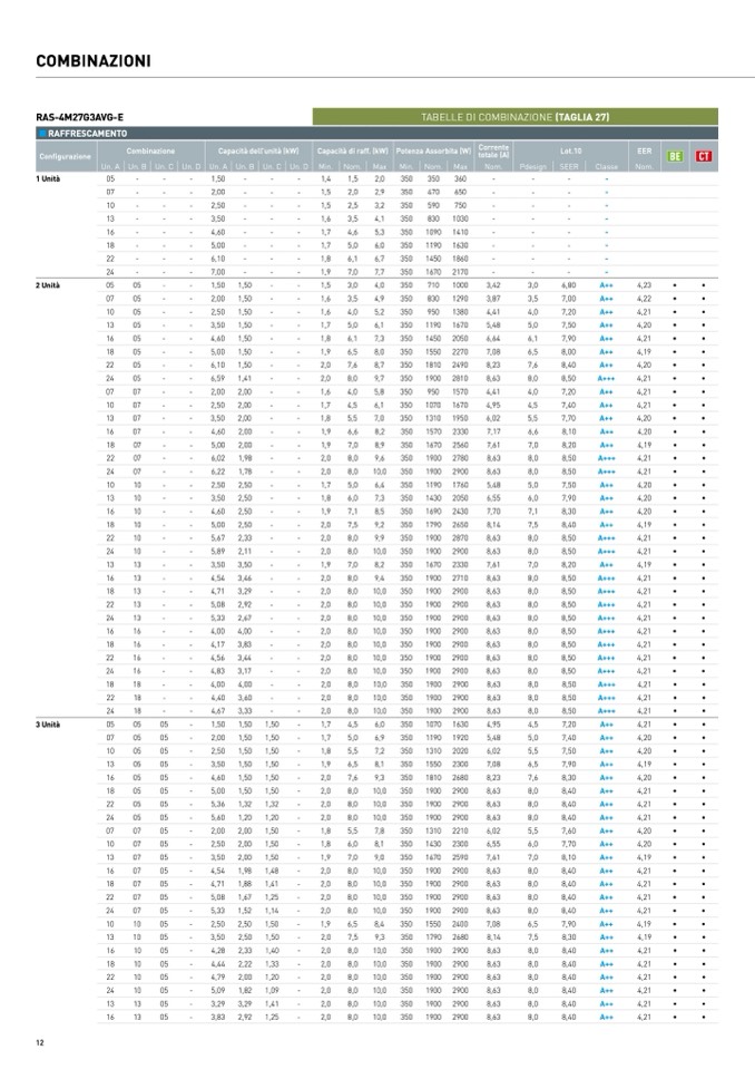 TABELLE DI COMBINAZIONE (TAGLIA 27