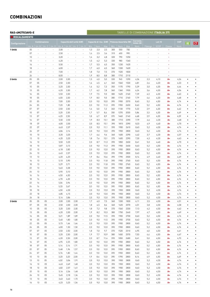 TABELLE DI COMBINAZIONE (TAGLIA 27