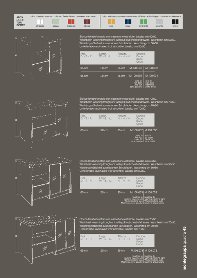 Blocco lavabo/lavatoio con cassettone estraibile. Lavabo cm 70x50.