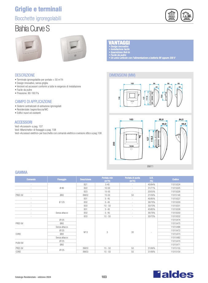 • Versioni ed accessori conformi a tutte le esigenze di installazione