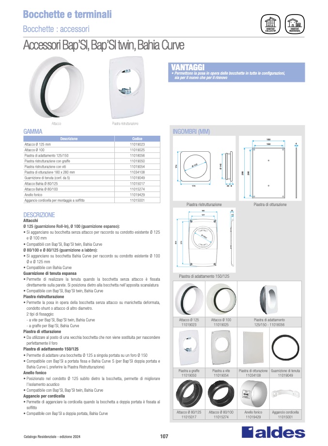 Ø 125 (guarnizione Roll-In), Ø 100 (guarnizione espanso):