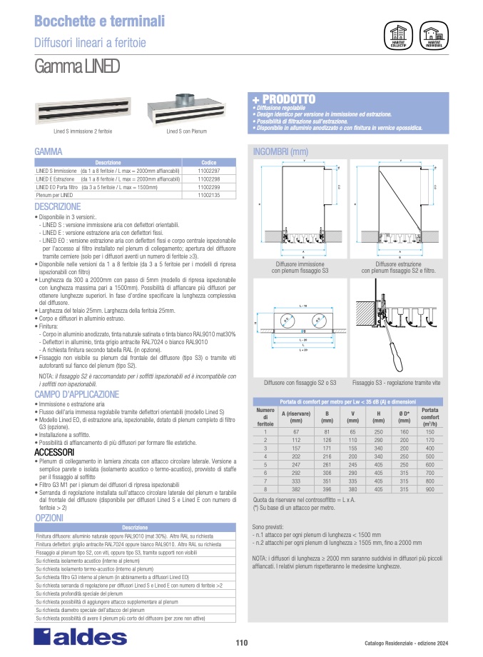 NOTA: i diffusori di lunghezza ≥ 2000 mm saranno suddivisi in diffusori più piccol