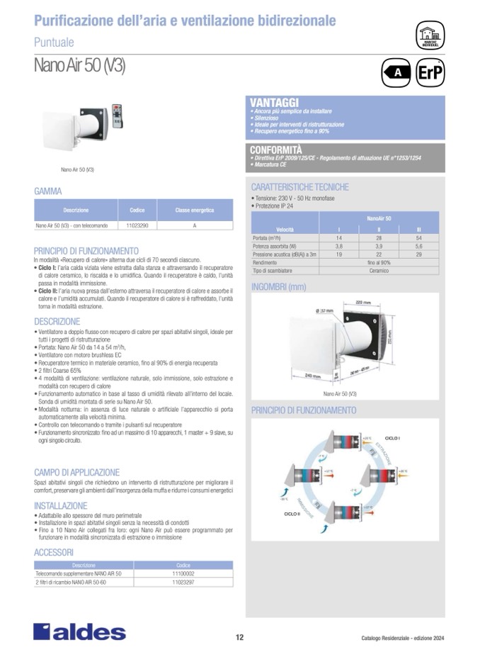 • Portata: Nano Air 50 da 14 a 54 m3/h,