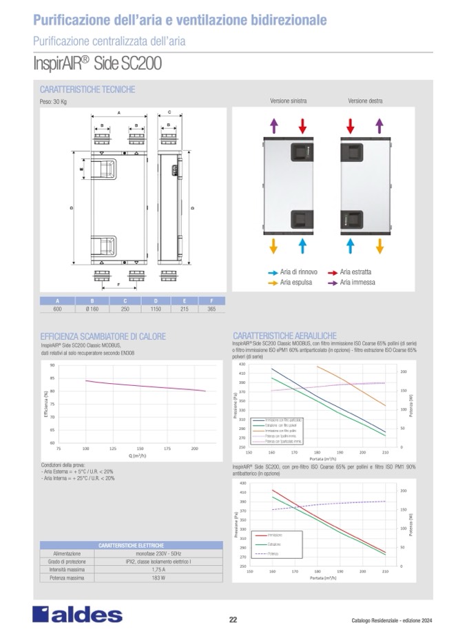InspirAIR® Side SC200 Classic MODBUS, con filtro immissione ISO Coarse 65% pollini (di serie)