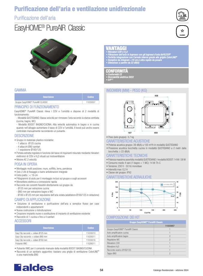 • Potenza acustica gruppo: 39 dB(A) a 100 m³/h in modalità QUOTIDIAN