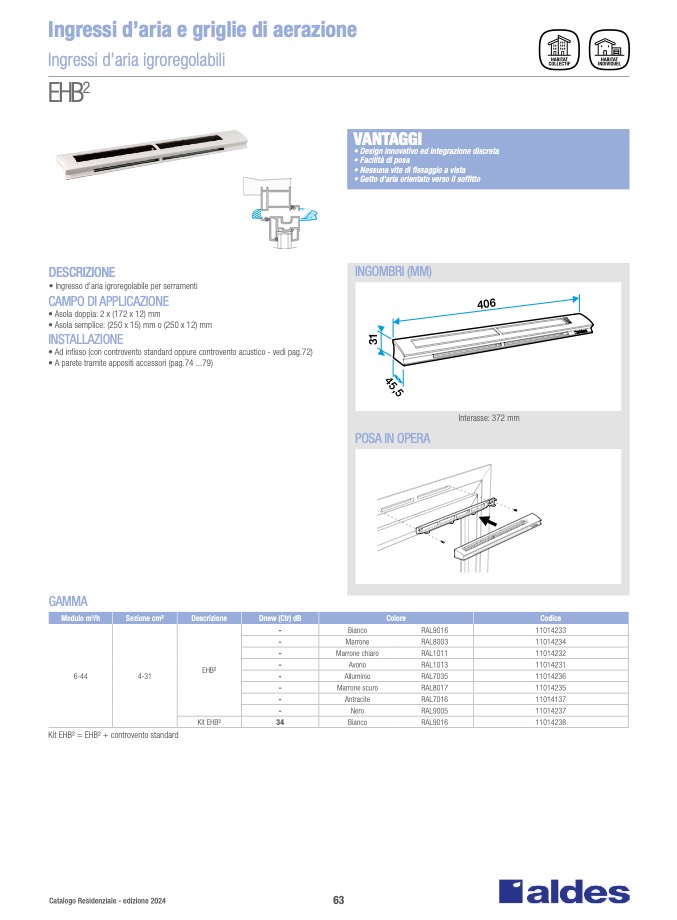 • Ad infisso (con controvento standard oppure controvento acustico - vedi pag.72