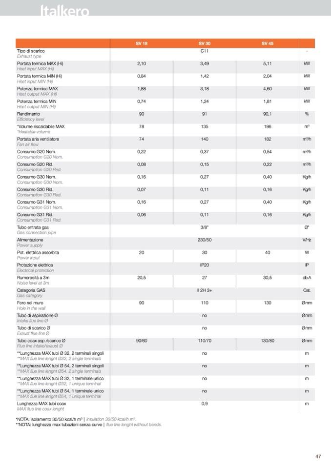 **nOta: lunghezza max tubazioni senza curve | flue line lenght without bends.