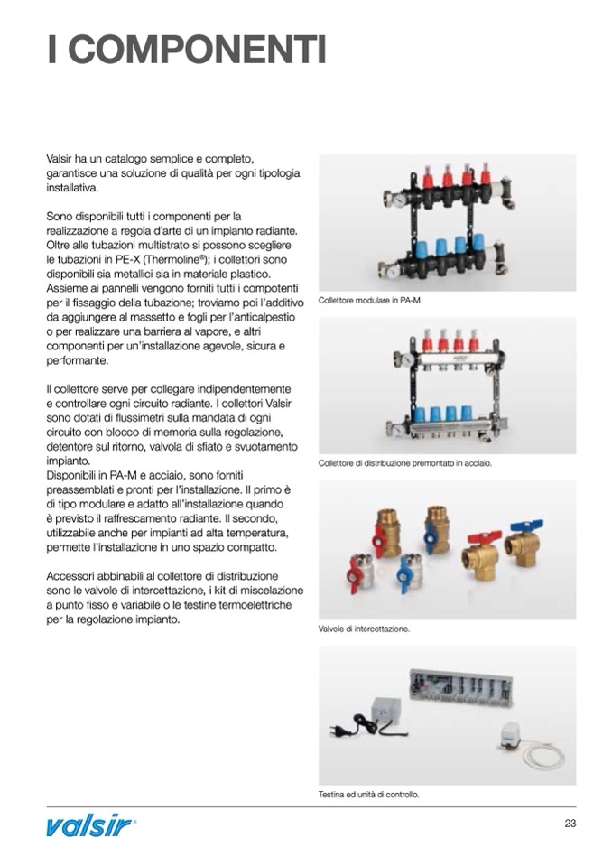 e controllare ogni circuito radiante. I collettori Valsir