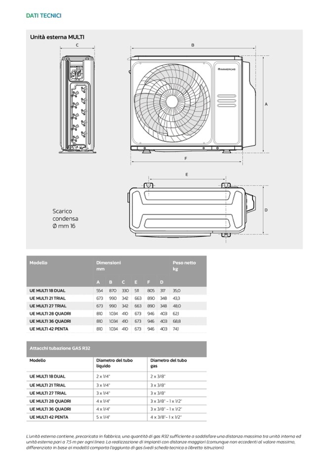 à di gas R32 sufficiente a soddisfare una distanza massima tra unità interna ed
