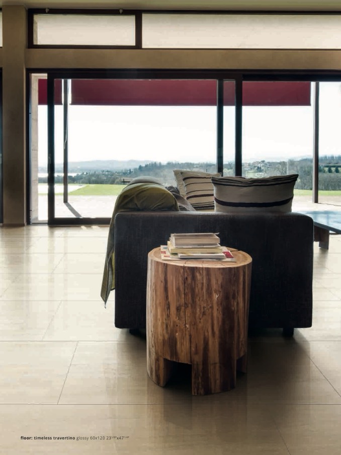 floor: timeless travertino glossy 60x120 235/8”x471/4”