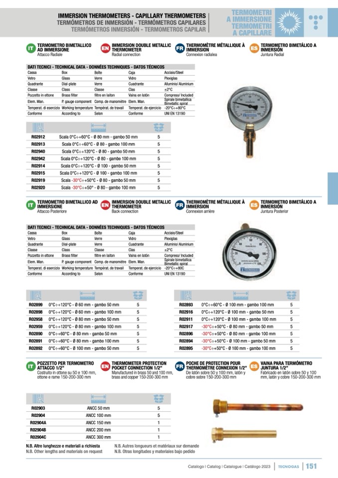 R02890 0°C÷+60°C - Ø 80 mm - gambo 50 mm