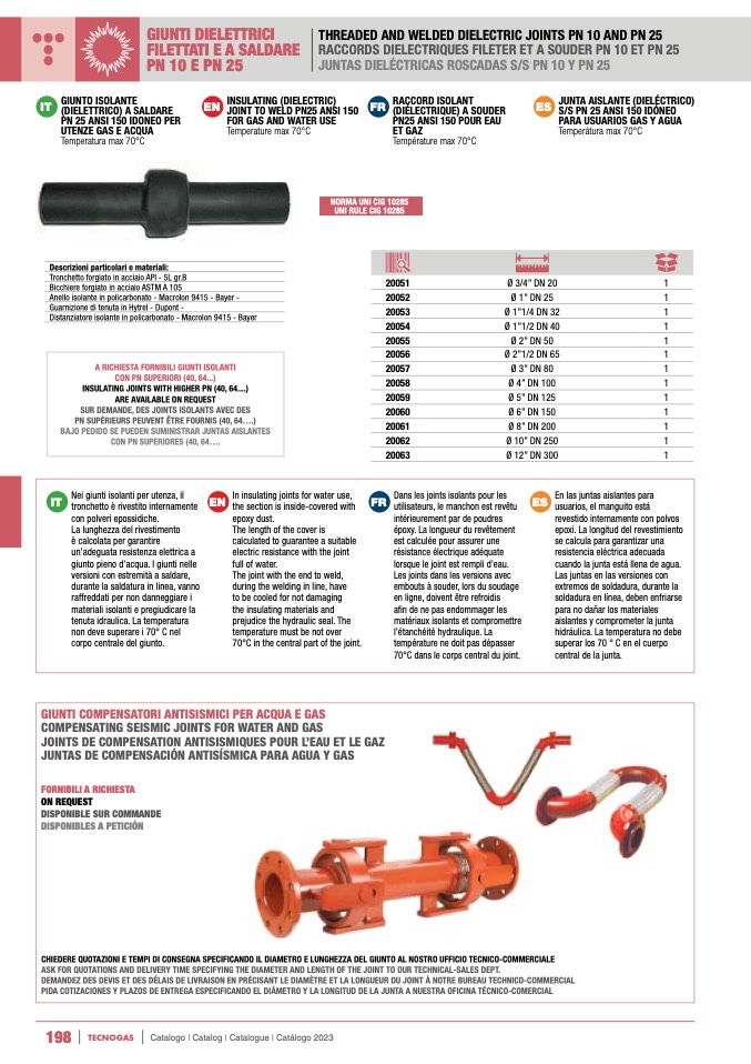 INSULATING JOINTS WITH HIGHER PN (40, 64....)