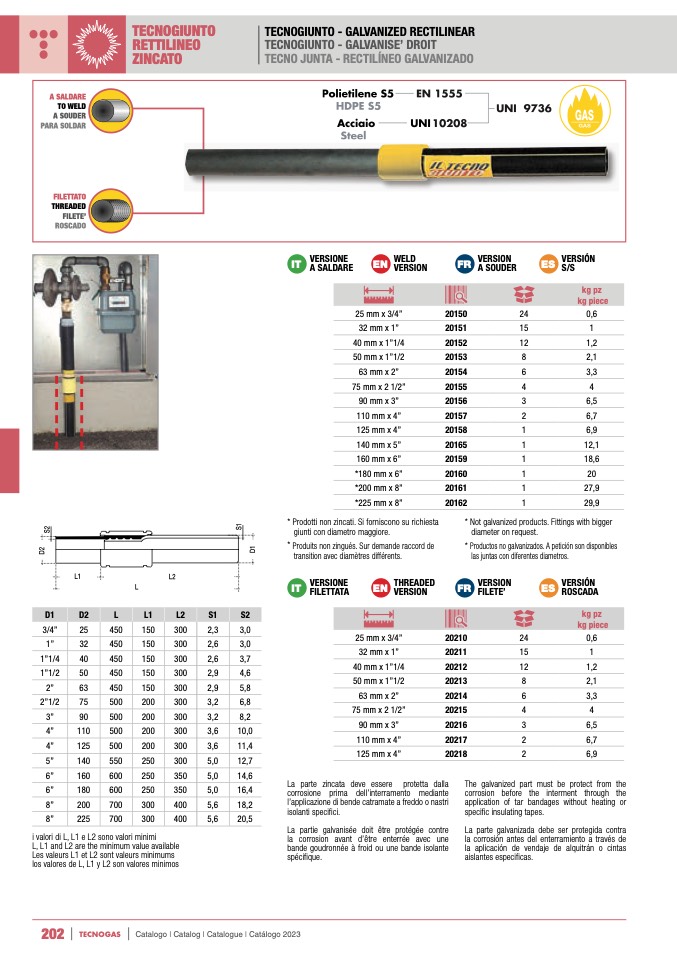 * Not galvanized products. Fittings with bigger