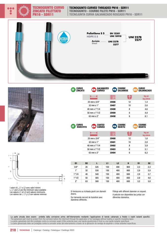 The galvanized part must be protect from the corrosion before the interment through the application of tar bandages without heating or specific insulating tapes.