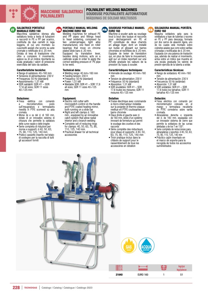 • Range di saldatura: 40÷160 mm
