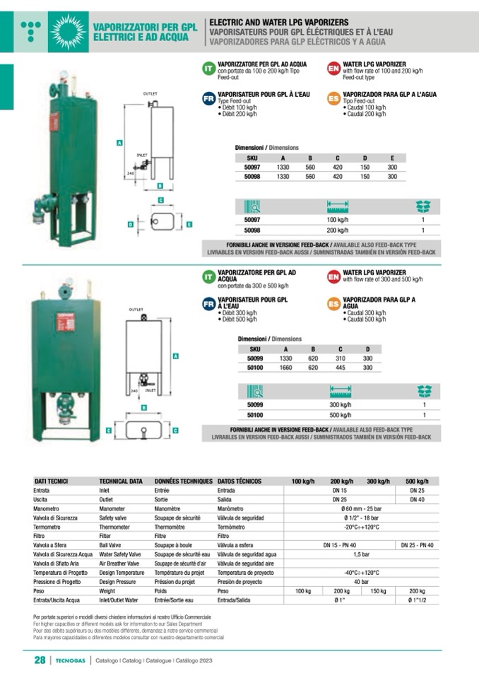 For higher capacities or different models ask for information to our Sales Department