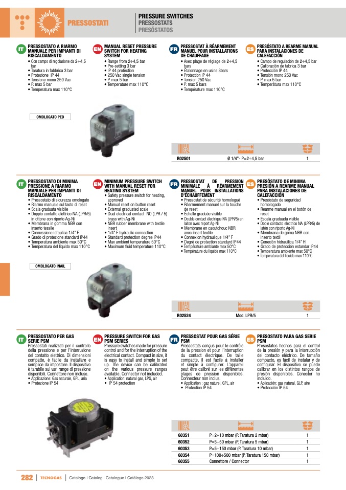 PRESSOSTATO PER GAS