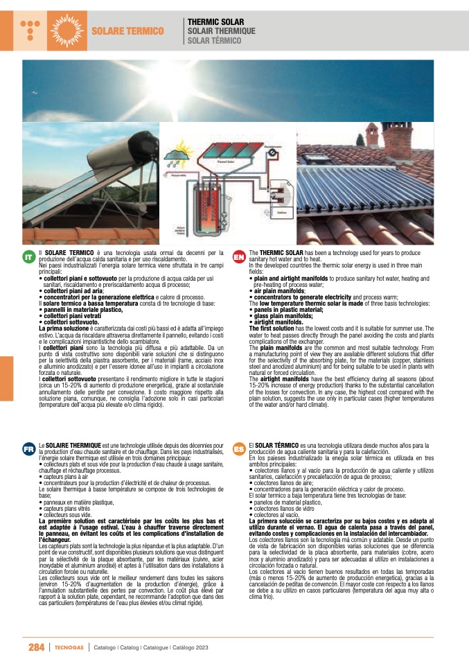 • colectores llanos y al vacío para la producción de agua caliente y utilizos