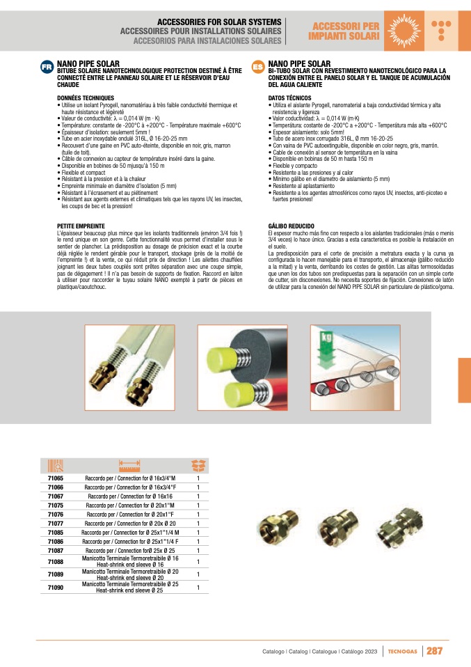 à utiliser pour raccorder le tuyau solaire NANO exempté à partir de pièces en