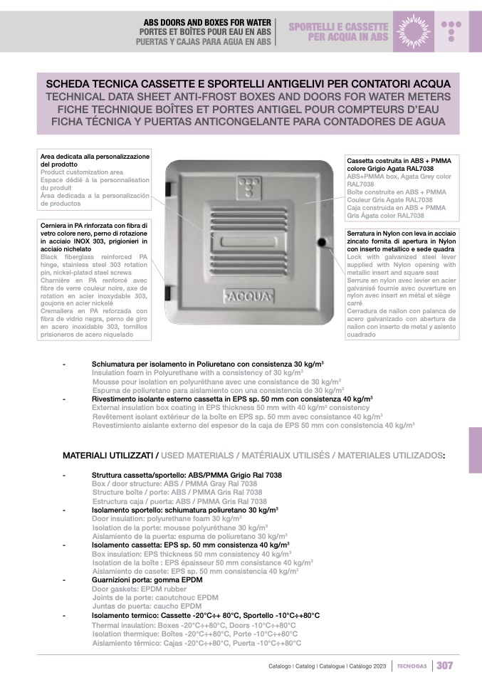 Thermal insulation: Boxes -20°C÷+80°C, Doors -10°C÷+80°C