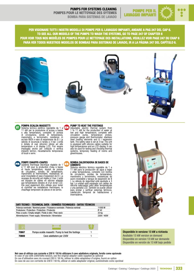TO SEE ALL OUR MODELS OF THE PUMPS TO WASH THE SYSTEMS, GO TO PAGE 247 OF CHAPTER 6