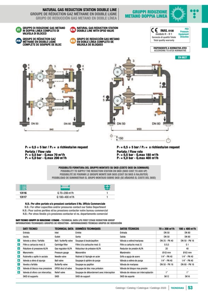 DATI TECNICI GRUPPI DI RIDUZIONE I STADIO - TECHNICAL DATA LPG FIRST STAGE REDUCTION GROUP