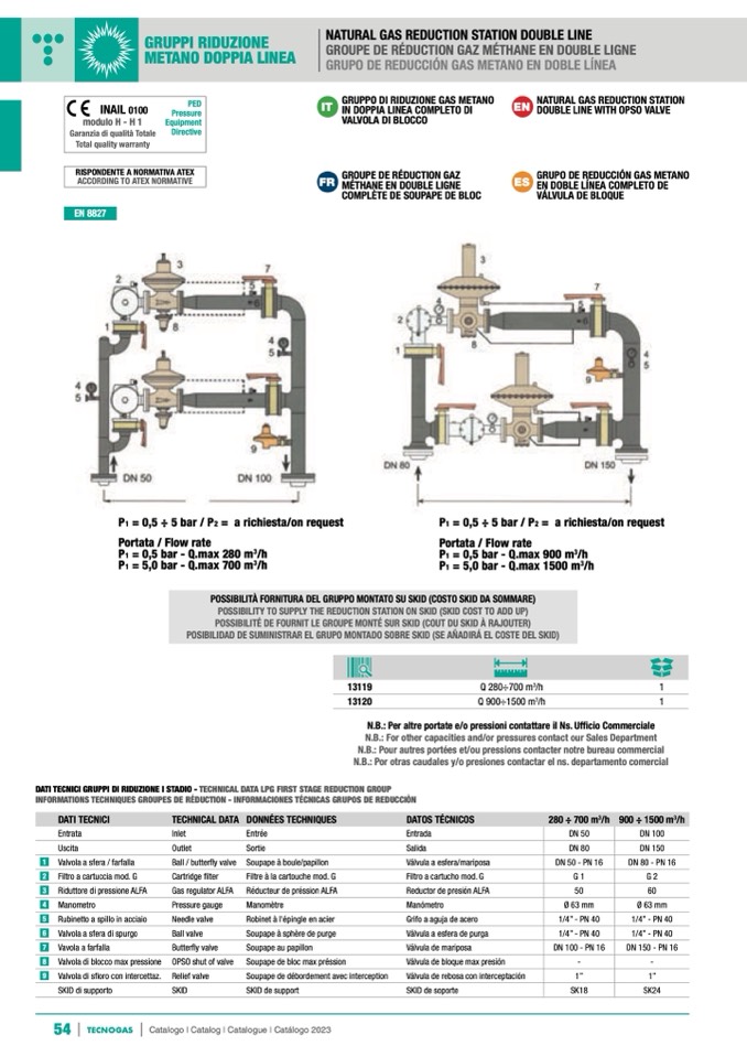 DATI TECNICI GRUPPI DI RIDUZIONE I STADIO - TECHNICAL DATA LPG FIRST STAGE REDUCTION GROUP