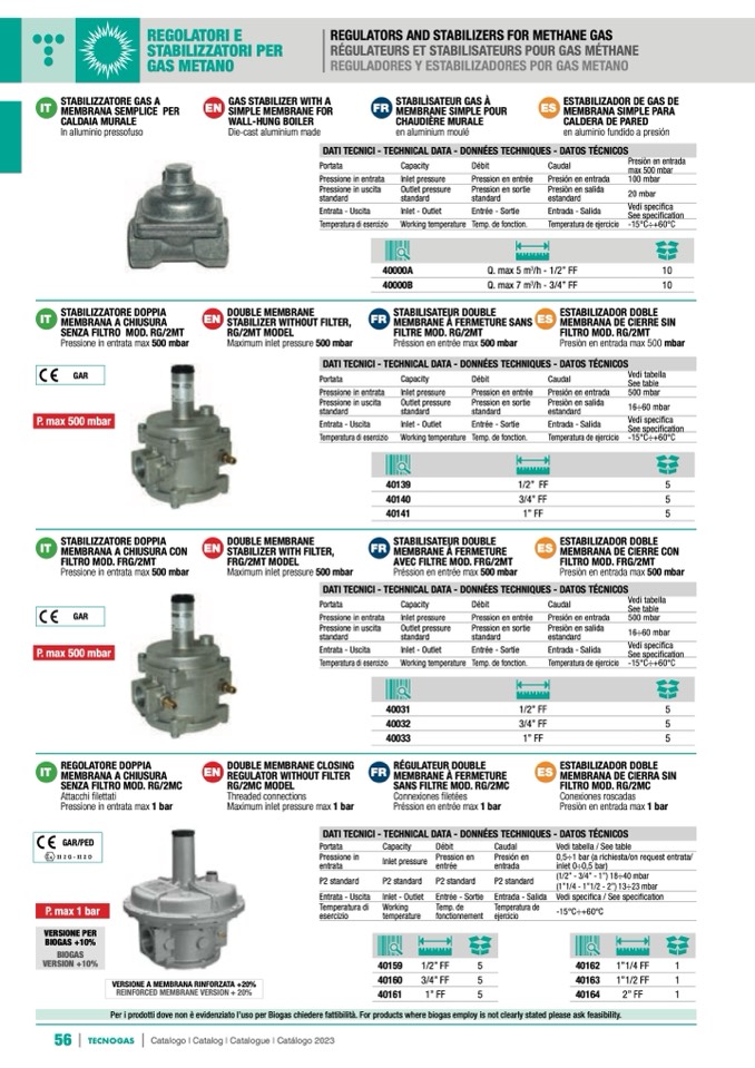 Per i prodotti dove non è evidenziato l’uso per Biogas chiedere fattibilità. For products where biogas employ is not clearly stated please ask feasibility.