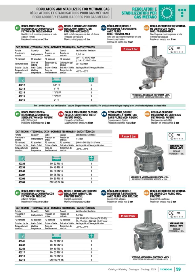 Per i prodotti dove non è evidenziato l’uso per Biogas chiedere fattibilità. For products where biogas employ is not clearly stated please ask feasibility.