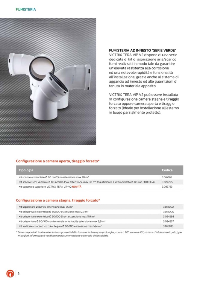 * Sono disponibili inoltre ulteriori componenti della fumisteria (esempio prolunghe, curve a 90°, curve a 45°, sistemi d’intubamento, etc.); per