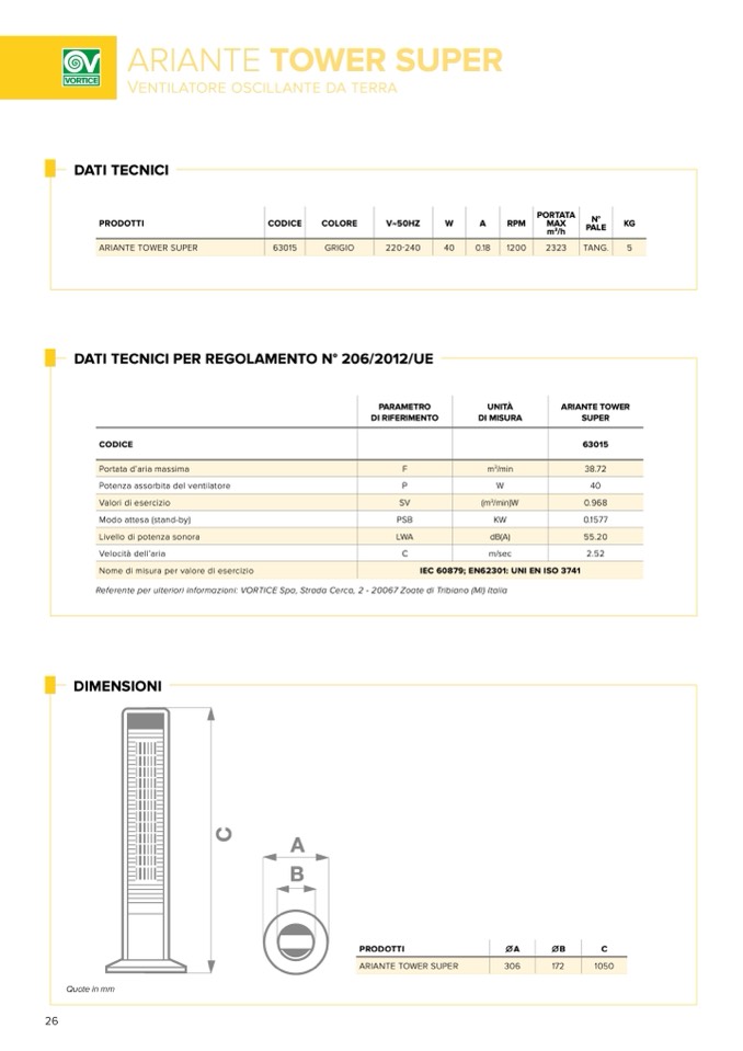 Referente per ulteriori informazioni: VORTICE Spa, Strada Cerca, 2 - 20067 Zoate di Tribiano (MI) Italia
