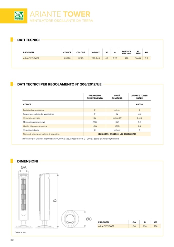 Referente per ulteriori informazioni: VORTICE Spa, Strada Cerca, 2 - 20067 Zoate di Tribiano (MI) Italia
