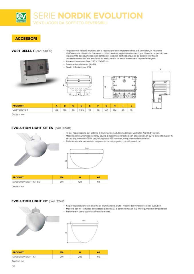 Kit per l’applicazione del sistema di illuminazione a tutti i modelli dei ventilatori Nordik Evolution.