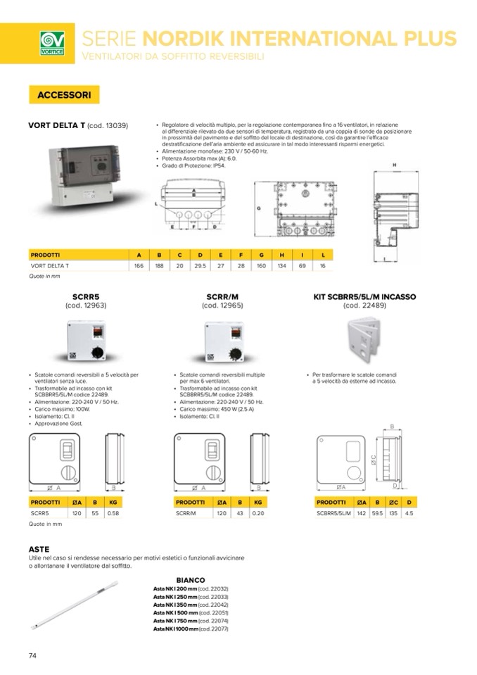• Scatole comandi reversibili a 5 velocità per