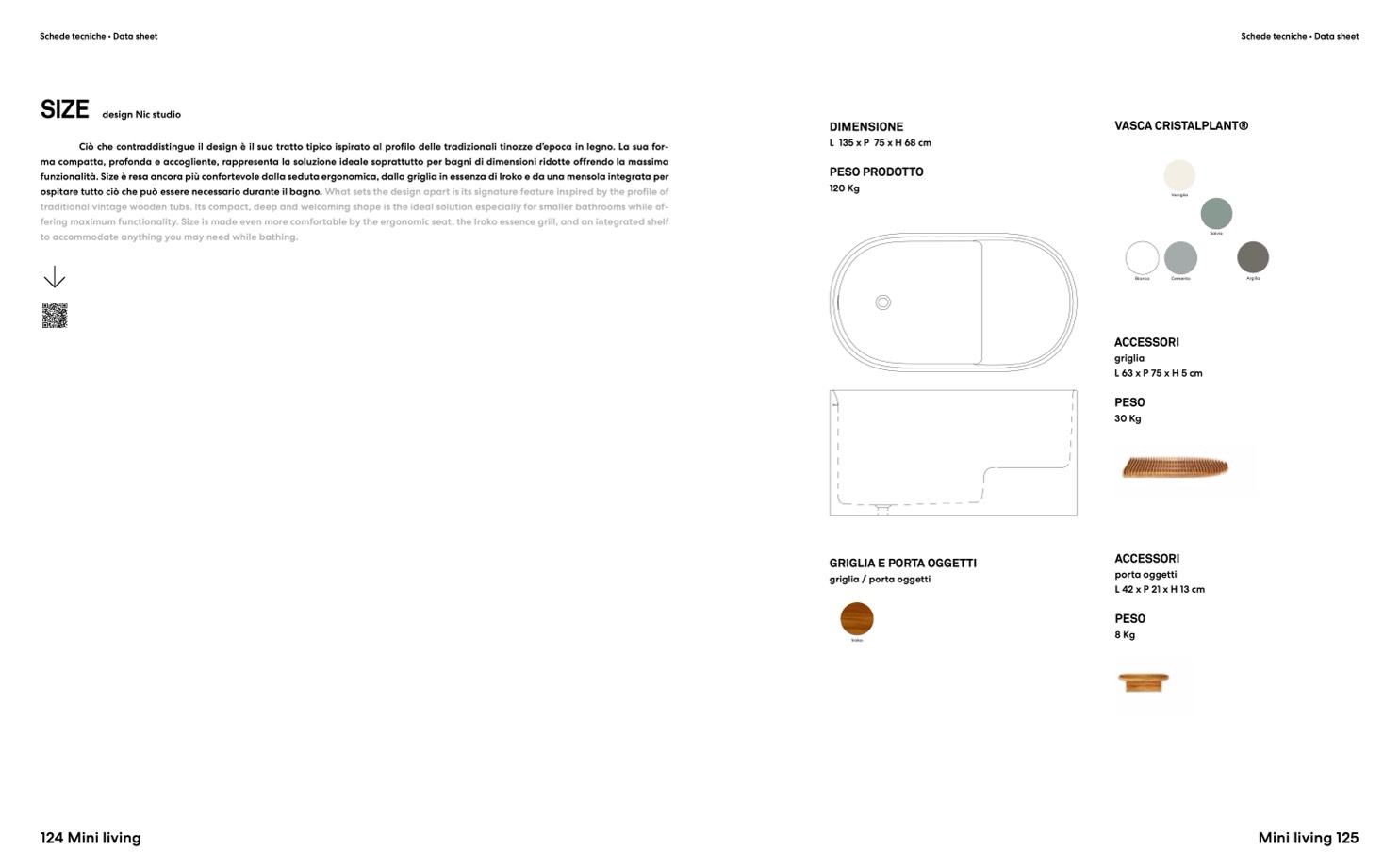 funzionalità. Size è resa ancora più confortevole dalla seduta ergonomica, dalla griglia in essenza di Iroko e da una mensola integrata per
