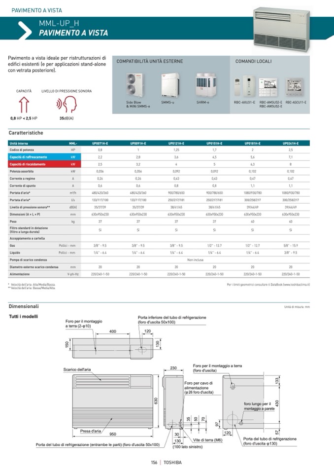 Per i limiti geometrici consultare il DataBook (www.toshibaclima.it)