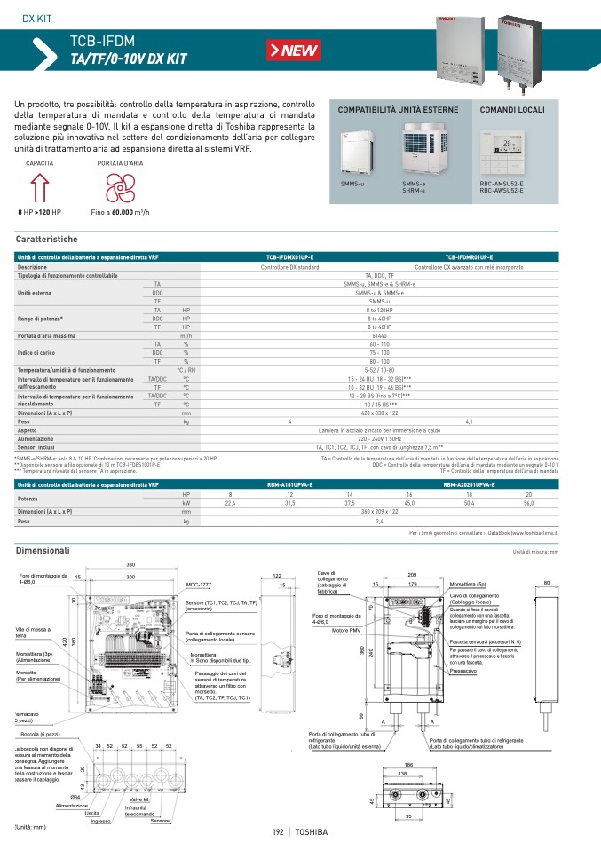 Per i limiti geometrici consultare il DataBook (www.toshibaclima.it)