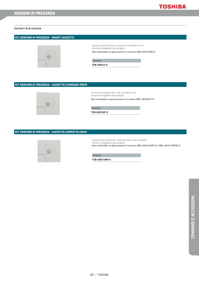 Sensore di presenza per unità cassette a 4 vie