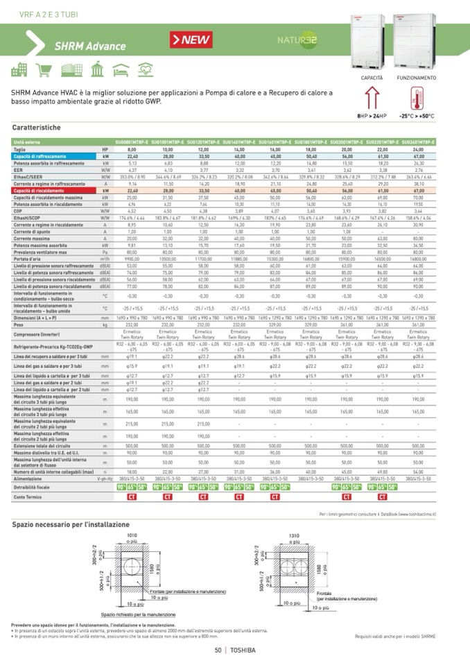 Per i limiti geometrici consultare il DataBook (www.toshibaclima.it)