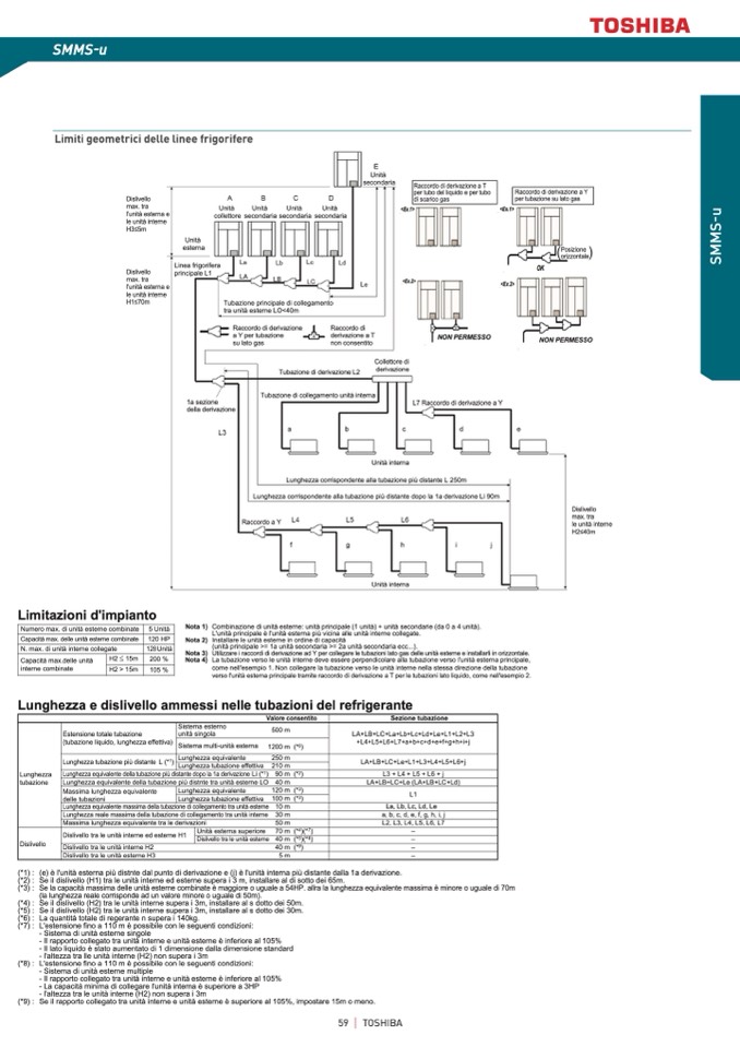 Selacapacitàmassimadelleunitàesternecombinateèmaggioreougualea54HP.allralalunghezzaequivalentemassimaèminoreougualedi70m