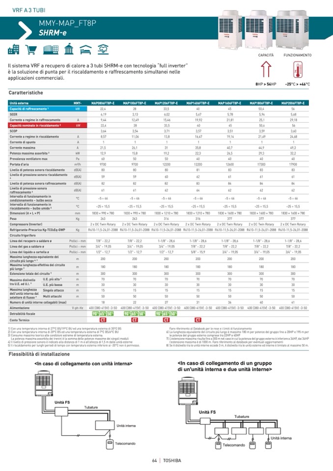 7) L’estensione massima risulta fino a 300 m nel caso in cui la potenza del gruppo esterno è inferiore a 34HP, dai 34HP