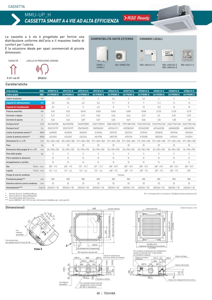Per i limiti geometrici consultare il DataBook (www.toshibaclima.it)