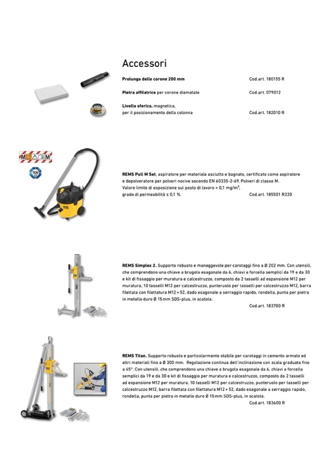 REMS Titan. Supporto robusto e particolarmente stabile per carotaggi in cemento armato ed